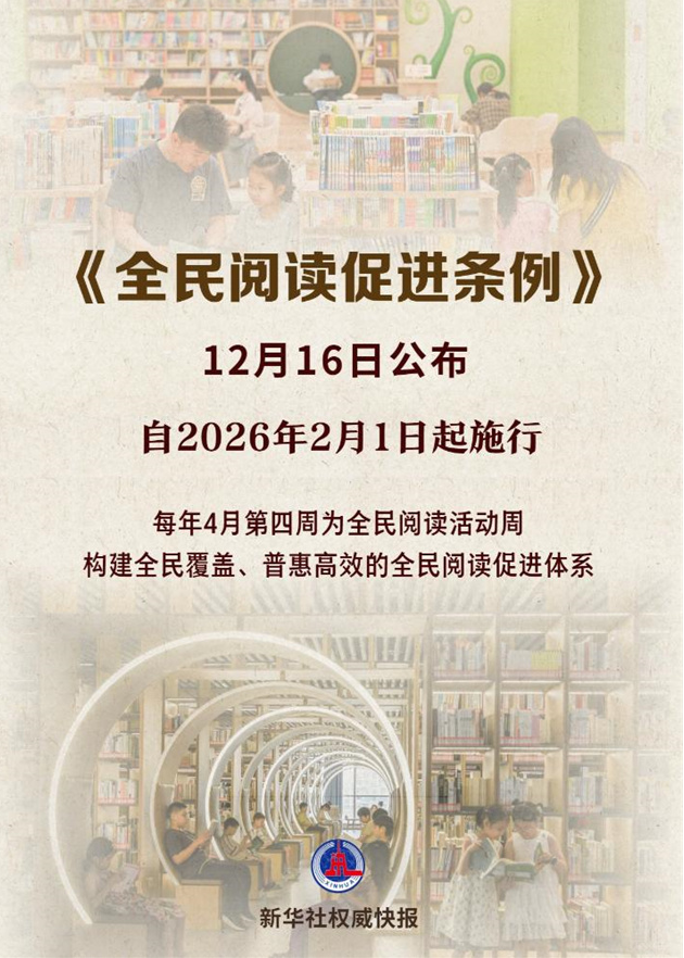 《全民阅读促进条例》颁布,自2026年2月1日起施行,标志着全民阅读从“政策引导”迈向“法治保障”。