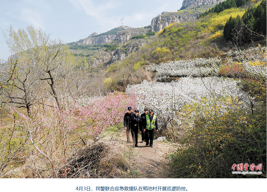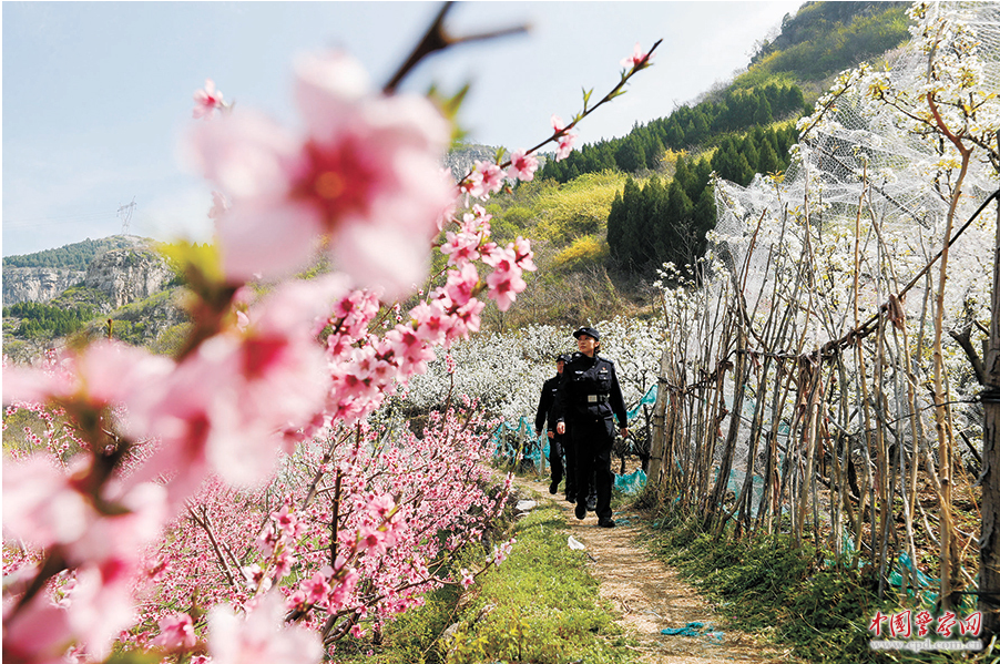 近日,山东省济南市南部山区的连翘花、桃花、梨花相继进入盛花期,大量游客到仲宫街道稻池村赏花、徒步。济南市公安局南山分局仲宫派出所社区警务队联合辖区救援队等巡防力量,在网红打卡点开展巡逻,与志愿者共同做好森林防火宣传、交通疏导、道路指引等工作,为广大游客营造安全舒心的游玩环境。