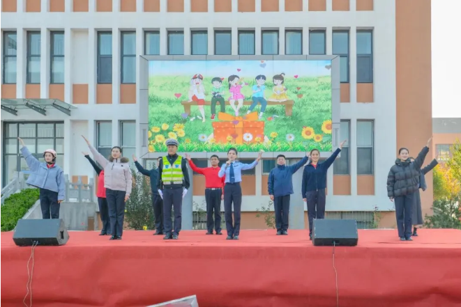 ▲演出在表演唱《擦亮你的眼》中铿锵启幕,激昂的旋律如冲锋号角,瞬间点燃全场,唤醒了学子们心中对安全的渴求。
