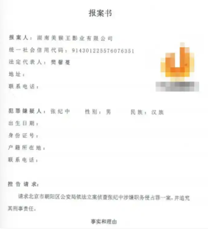 近日,一则湖南美猴王影业有限公司向北京市朝阳区公安局出具的报案书在网络上流传。11月5日,潇湘晨报记者从该公司了解到,上述报案书为真实材料,该公司向北京市朝阳区公安局报案,请求依法立案侦查张纪中涉嫌职务侵占罪一案。记者联系了北京市朝阳区公安局,值班工作人员表示,对于上述情况并不清楚。