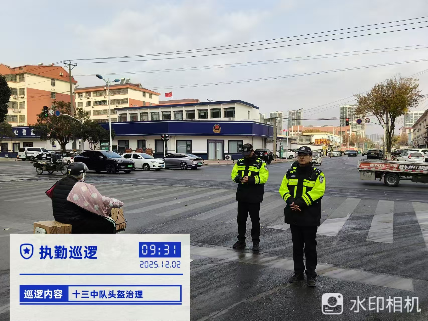 图为六中队沂蒙路与北园路开展头盔治理 汲中强摄