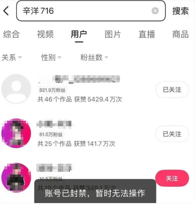 女主播展示聊天记录公开资料显示,辛洋为一名网红主播,账号为“辛洋716”,在某短视频平台有822万名粉丝。直播录屏视频中,“可意妹妹”称事发已有一周,公司没有相关解释。“可意妹妹”还展示了聊天记录,聊天记录显示她曾表示害怕,对方则告诉她“没有后遗症”。 记者注意到,该平台已经无法搜索到“可意妹妹”的账号名。有关注“可意妹妹”账号的网友发布了主页封禁截图,截图显示,由于违反该平台的相关规定,该账号已被封禁。