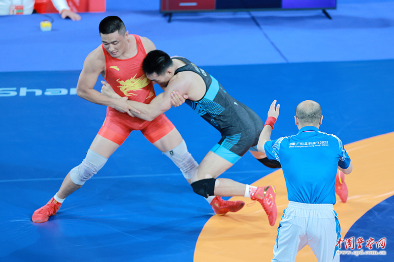 “代表公安民警参赛,怎能轻言放弃?!”13日,男子古典式摔跤97公斤级的比赛中,摔跤健儿童磊杰在首轮输给新疆队名将后,不气馁、不灰心,积极调整状态,抓住复活赛机会,最终成功突围,收获一枚宝贵的铜牌。