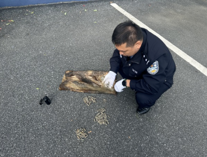 经了解,曾先生当日在滨江大道南延路段沂江河水域垂钓,刚收线时,就感觉鱼线异常沉重。本以为是钓上了大鱼,拉近一看却发现勾住的是一个鼓鼓囊囊的白色编织袋。打开一道缝隙查看后,里面装的竟是一排排子弹,吓得他赶紧后退到安全地带,第一时间拨打了110报警。接警后民警迅速赶到现场,经统计,袋内装有手枪子弹、步枪子弹等各类弹药,经清点总计108发。部分子弹表面虽附着水锈,但弹体完整仍具备一定危险性,结合外观特征疑似为历史遗留弹药。