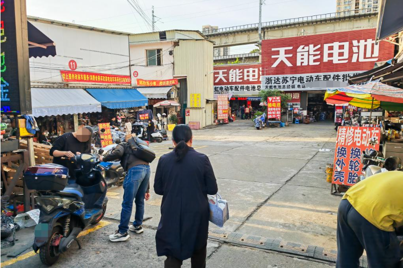 11月27日在广西南宁市拍摄的一处电动自行车零配件市场,这里的一些店铺提供电动自行车改装服务。