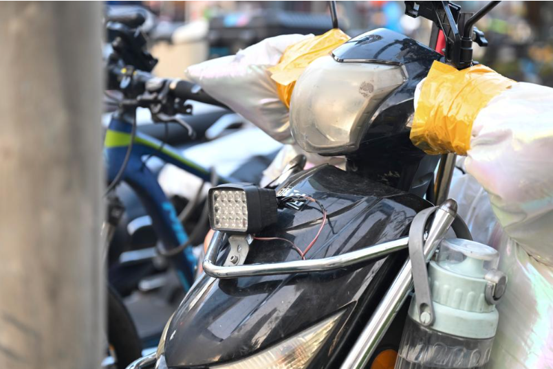 部分电动自行车私自改装、加装强光灯