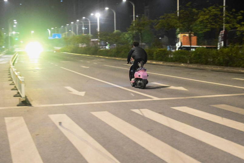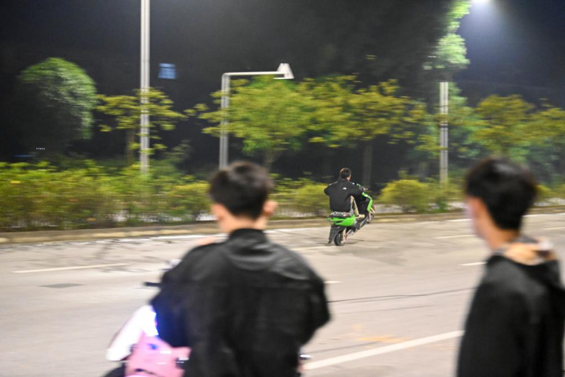 11月25日晚,在广西某市街头,一些少年骑着改装过的电动自行车炫技。