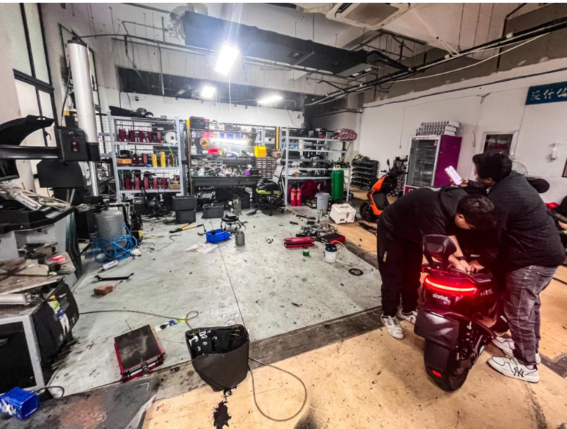 11月26日,在上海市郊一家电动自行车改装店铺,工作人员对电动自行车进行改装。改装后的车辆时速可轻松破百。