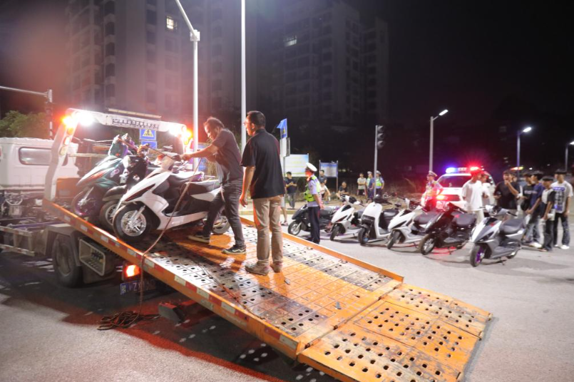9月28日,广西贺州市公安民警对“鬼火少年”驾驶改装电动自行车“飙车炸街”等行为采取执法行动。