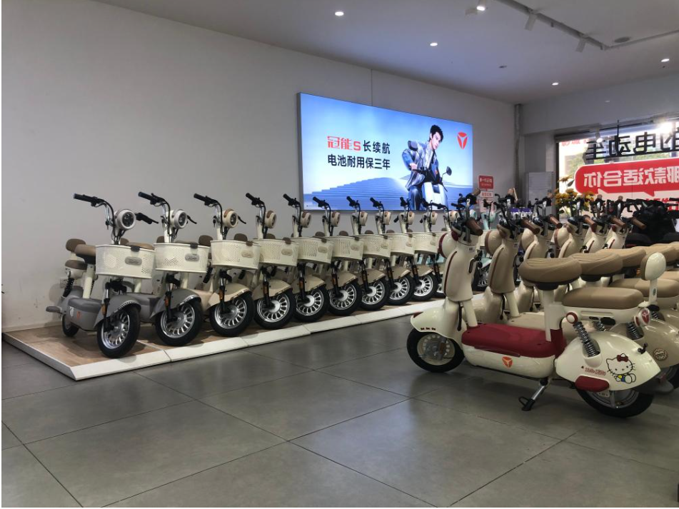 广州天河雅迪电动车销售店在售的新国标电动车。(受访者供图)