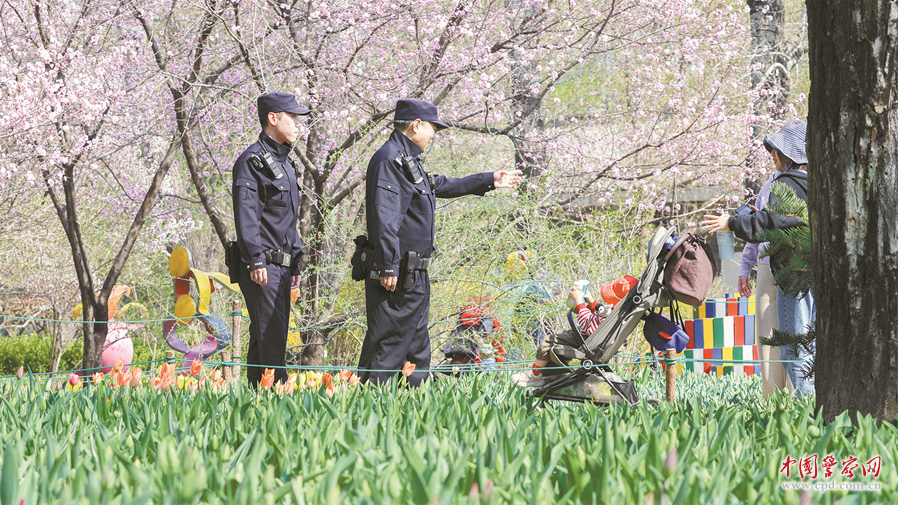 连日来,位于北京市海淀区的国家植物园、玉渊潭公园等市属公园桃花、樱花次第绽放,吸引大量群众前来打卡赏花。北京市公安局海淀分局开启春季护游模式,安排民警在公园内开展动态巡逻守护,加强人流高峰期重要部位秩序维护,提供解答咨询、求助报警、安全提示、游园引导等服务,守护群众平安游园。