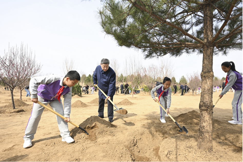 新华社北京3月30日电 中共中央总书记、国家主席、中央军委主席习近平30日上午在参加首都义务植树活动时强调,良好生态人人共享,也需要合力共建。要组织动员全社会广泛参与植树造林,为山川大地增添锦绣,让中国式现代化的底色更加亮丽。