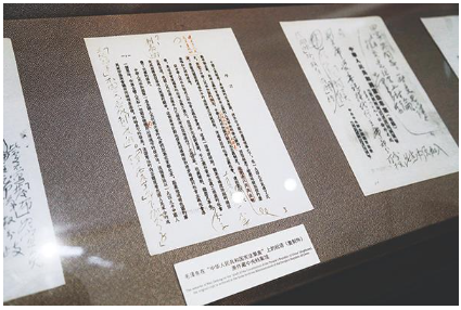 △“五四宪法”历史资料陈列馆展出的毛泽东批改宪法草案初稿的手稿。