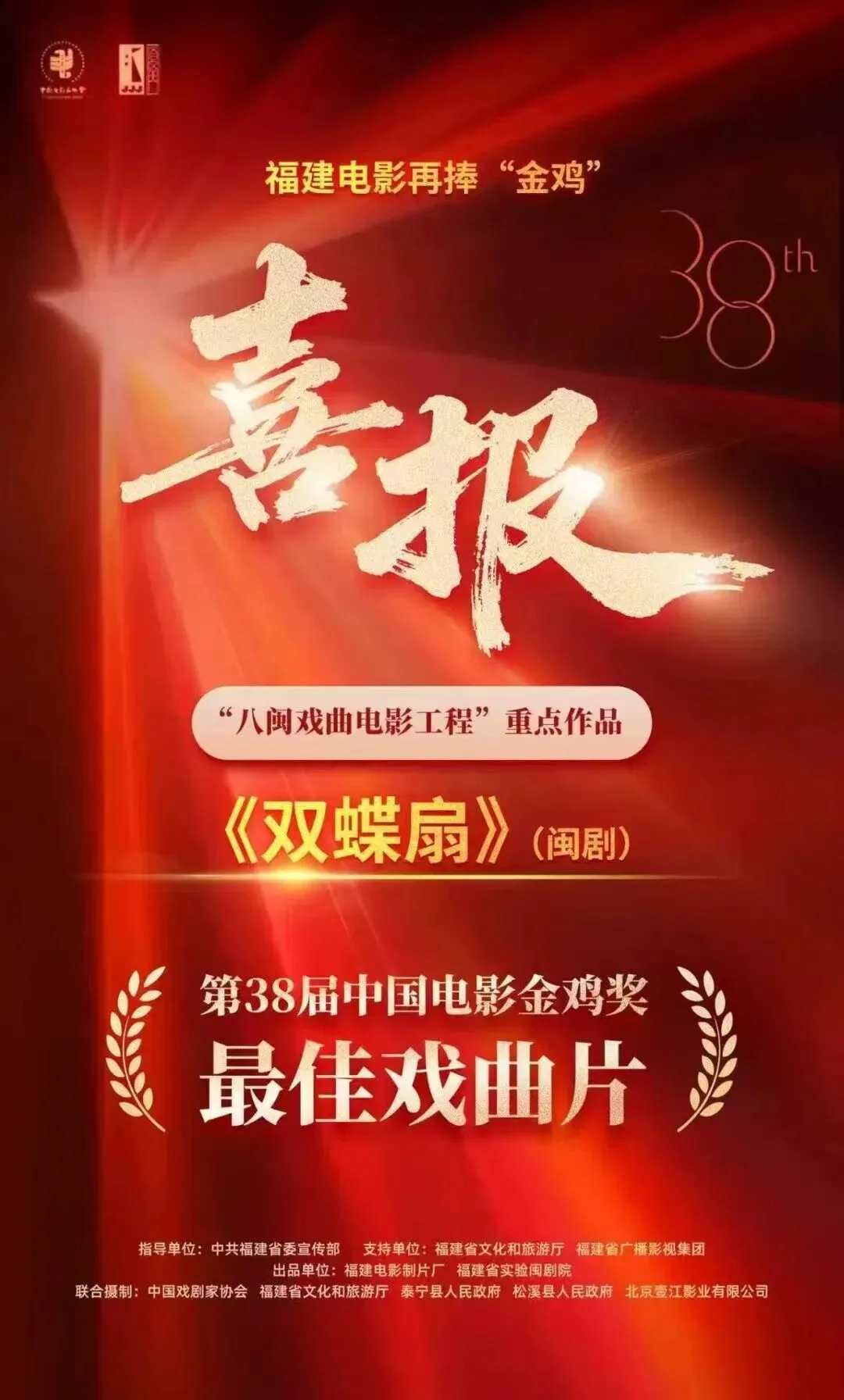 近日,第38届中国电影金鸡奖颁奖典礼,在厦门国际博览中心举行,临沂籍导演江涛执导的闽剧电影《双蝶扇》, 凭借其对传统戏曲与现代电影语言的创新性融合,摘得“最佳戏曲片”桂冠。