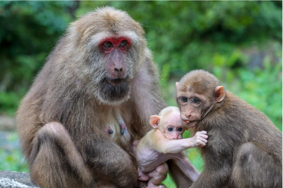 2025年7月22日,藏酋猴在武夷山国家公园腹地桐木村嬉戏。新华社发(邱汝泉 摄)