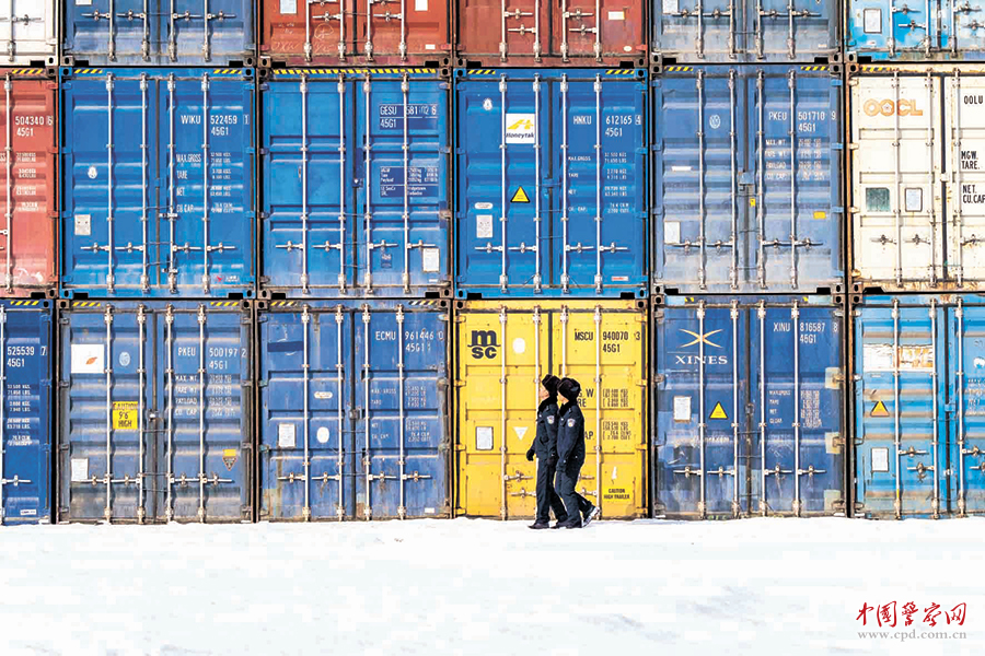图为民警正在对集装箱进行安全检查。