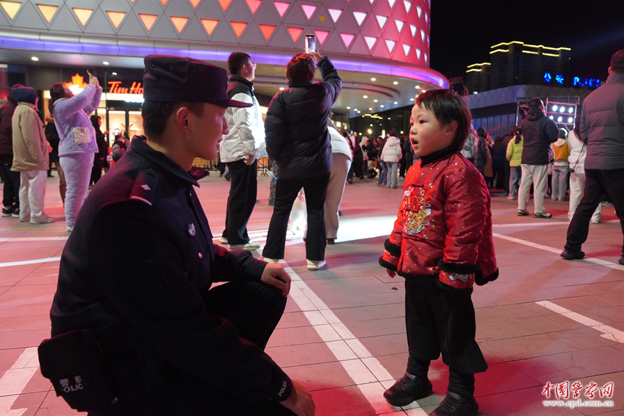 欢腾的人流中,一抹抹流动的“藏蓝”身影,守护着市民游客热闹游玩、平安跨年。