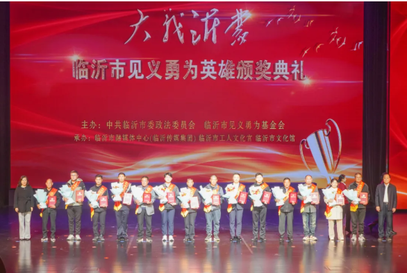 10月31日下午,“大义沂蒙—临沂市见义勇为英雄颁奖典礼”隆重举行,市委书记张宝亮、市政协主席边峰出席活动。临沂法院系统干警、沂南县人民法院司法警察大队副大队长张宗涛凭借勇救落水群众的英勇事迹,荣获“见义勇为英雄”称号,并被授予荣誉勋章。