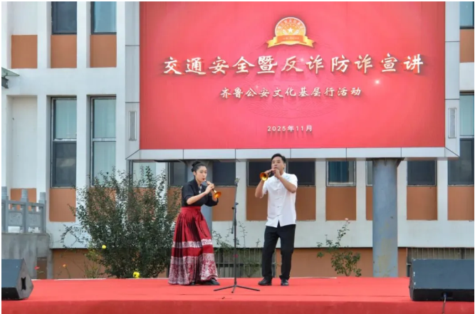 羲之故里翰墨香,红色热土谱新章。金秋的沂蒙,天高云淡,沂水泛波,蒙山含笑。在这片浸润着深厚文化与革命精神的沃土上。11月4日,山东省公安厅“交通安全暨反诈防诈宣讲”基层行文艺小分队携着厅党委的殷殷关怀,先后走进书声琅琅的临沂市旅游学校与扎根城乡的沂南农商银行,以文艺为舟,以宣教为桨,在欢声笑语中驶入民心,为老区人民带来一场兼具艺术美感与安全温度的“及时雨”。